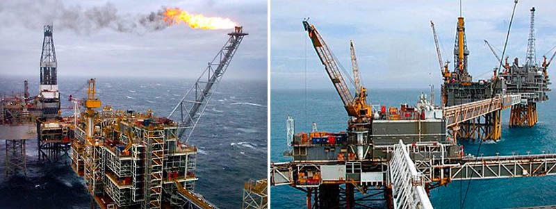 Troll A bukan satu-satunya (lebih lengkap di sini). Ada beberapa monster lagi di ladang minyak Laut Utara - yup, inilah si "B" dan "C".